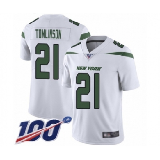 Men's New York Jets #21 LaDainian Tomlinson White Vapor Untouchable Limited Player 100th Season Football Jersey