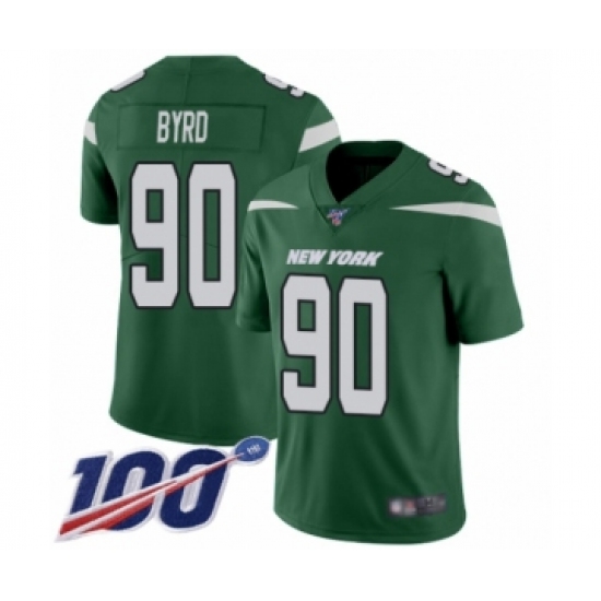>Men's New York Jets #90 Dennis Byrd Green Team Color Vapor Untouchable Limited Player 100th Season Football Jersey