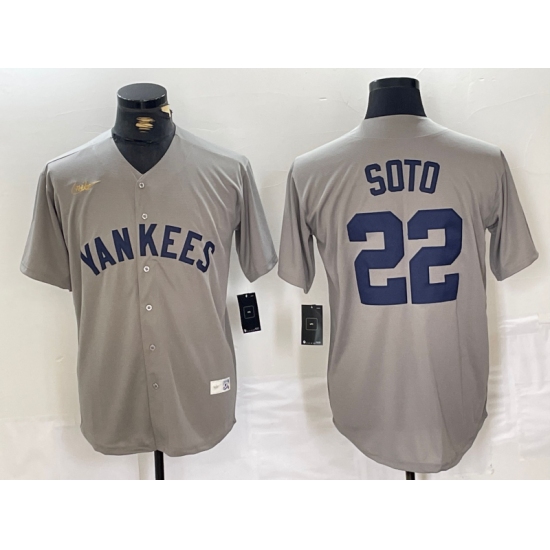 Men's New York Yankees #22 Juan Soto Name Grey Stitched Nike Throwback Jersey
