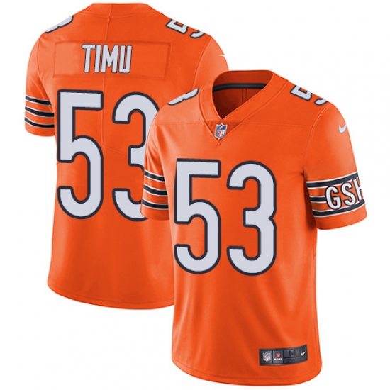 Home>NFL>Chicago Bears>John Timu>Men's Nike Chicago Bears #53 John Timu Limited Orange Rush Vapor Untouchable NFL Jersey