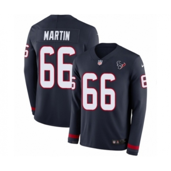Men's Nike Houston Texans #66 Nick Martin Limited Navy Blue Therma Long Sleeve NFL Jersey