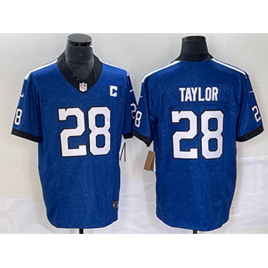 Men's Indianapolis Colts #28 Jonathan Taylor Blue 2024 F.U.S.E. With 2-Star C Vapor Limited Stitched Football Jersey