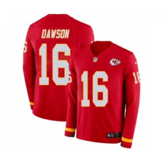 >Men's Nike Kansas City Chiefs #16 Len Dawson Limited Red Therma Long Sleeve NFL Jersey