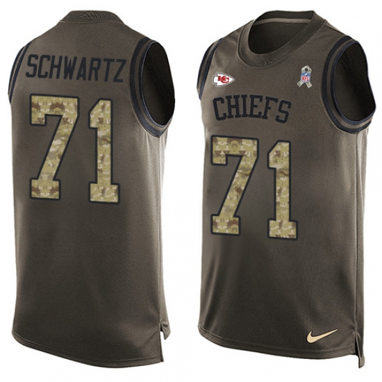 Home>NFL>Kansas City Chiefs>Mitchell Schwartz>Men's Nike Kansas City Chiefs #71 Mitchell Schwartz Limited Green Salute to Service Tank Top NFL Jersey
