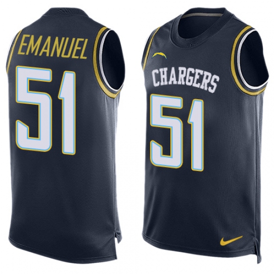 Men's Nike Los Angeles Chargers #51 Kyle Emanuel Limited Navy Blue Player Name & Number Tank Top NFL Jersey