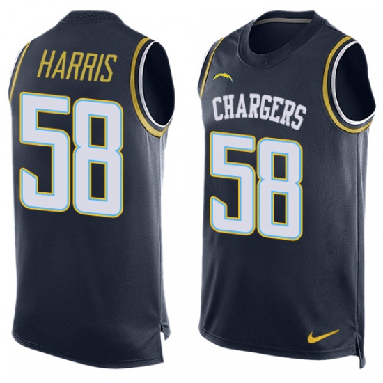 Home>NFL>Los Angeles Chargers>Nigel Harris>Men's Nike Los Angeles Chargers #58 Nigel Harris Limited Navy Blue Player Name & Number Tank Top NFL Jersey