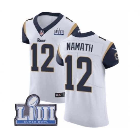 Men's Nike Los Angeles Rams #12 Joe Namath White Vapor Untouchable Elite Player Super Bowl LIII Bound NFL Jersey