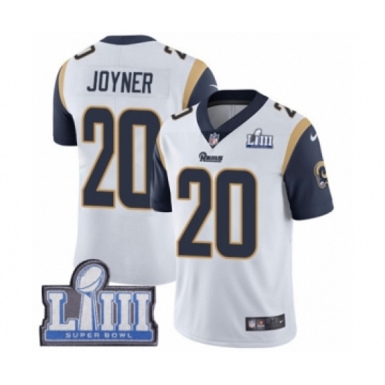 Men's Nike Los Angeles Rams #20 Lamarcus Joyner White Vapor Untouchable Limited Player Super Bowl LIII Bound NFL Jersey