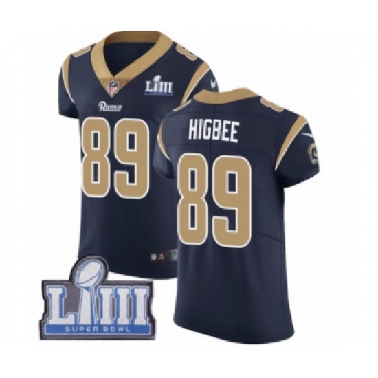 >Men's Nike Los Angeles Rams #89 Tyler Higbee Navy Blue Team Color Vapor Untouchable Elite Player Super Bowl LIII Bound NFL Jersey