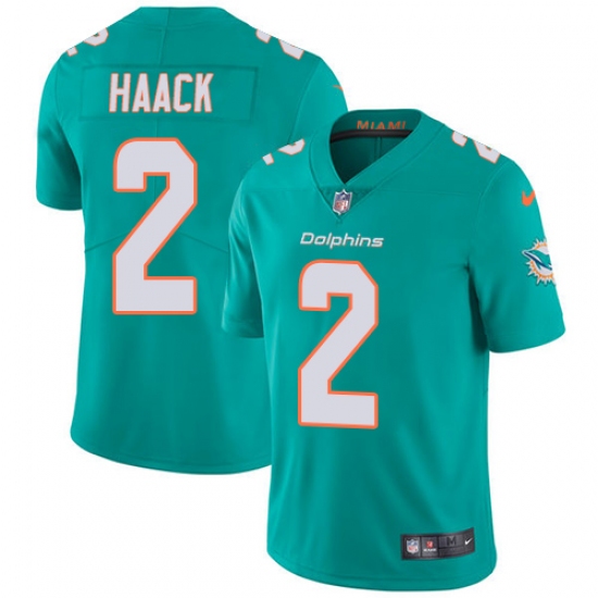 >Men's Nike Miami Dolphins #2 Matt Haack Aqua Green Team Color Vapor Untouchable Limited Player NFL Jersey