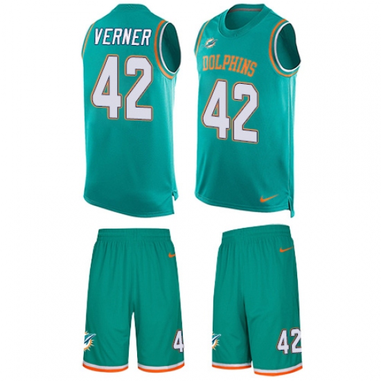 Men's Nike Miami Dolphins #42 Alterraun Verner Limited Aqua Green Tank Top Suit NFL Jersey