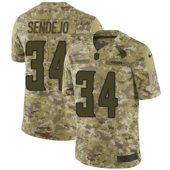 >Men's Nike Minnesota Vikings #34 Andrew Sendejo Limited Camo 2018 Salute to Service NFL Jersey