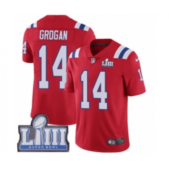 Men's Nike New England Patriots #14 Steve Grogan Red Alternate Vapor Untouchable Limited Player Super Bowl LIII Bound NFL Jersey