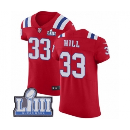 Men's Nike New England Patriots #33 Jeremy Hill Red Alternate Vapor Untouchable Elite Player Super Bowl LIII Bound NFL Jersey