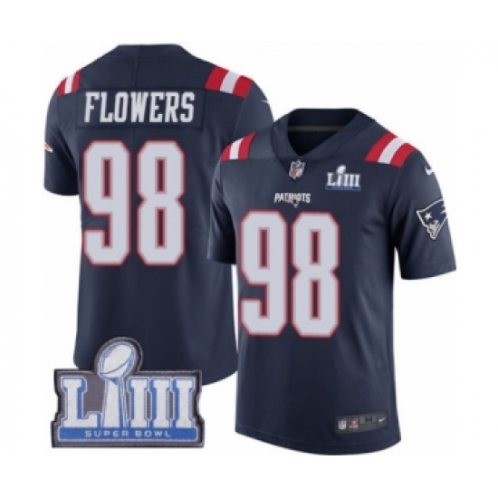 Men's Nike New England Patriots #98 Trey Flowers Limited Navy Blue Rush Vapor Untouchable Super Bowl LIII Bound NFL Jersey