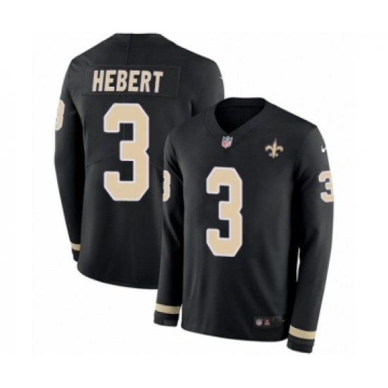 Men's Nike New Orleans Saints #3 Bobby Hebert Limited Black Therma Long Sleeve NFL Jersey