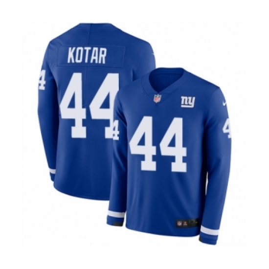 >Men's Nike New York Giants #44 Doug Kotar Limited Royal Blue Therma Long Sleeve NFL Jersey