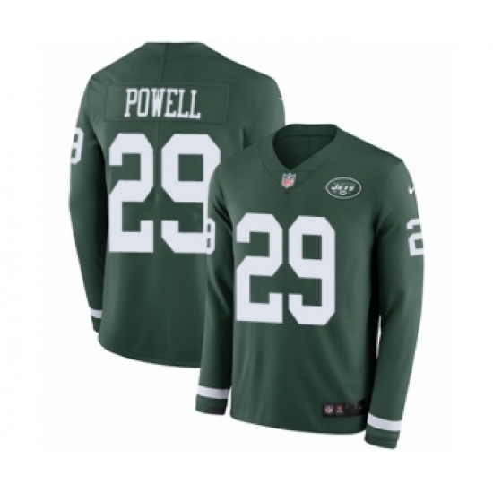 >Men's Nike New York Jets #29 Bilal Powell Limited Green Therma Long Sleeve NFL Jersey