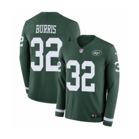 Men's Nike New York Jets #32 Juston Burris Limited Green Therma Long Sleeve NFL Jersey