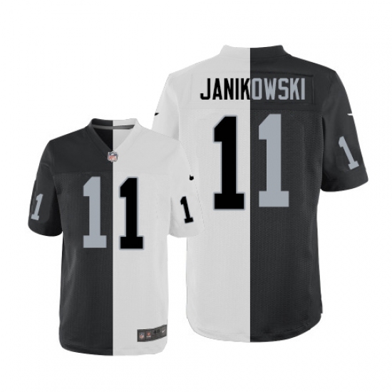 Home>NFL>Oakland Raiders>Sebastian Janikowski>Men's Nike Oakland Raiders #11 Sebastian Janikowski Elite Black/White Split Fashion NFL Jersey
