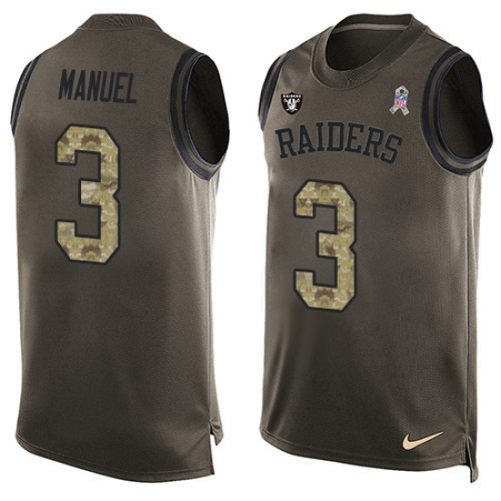 Men's Nike Oakland Raiders #3 E. J. Manuel Limited Green Salute to Service Tank Top NFL Jersey
