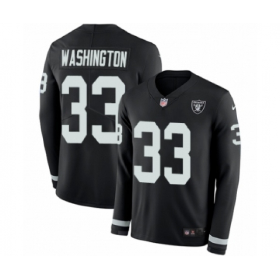 >Men's Nike Oakland Raiders #33 DeAndre Washington Limited Black Therma Long Sleeve NFL Jersey