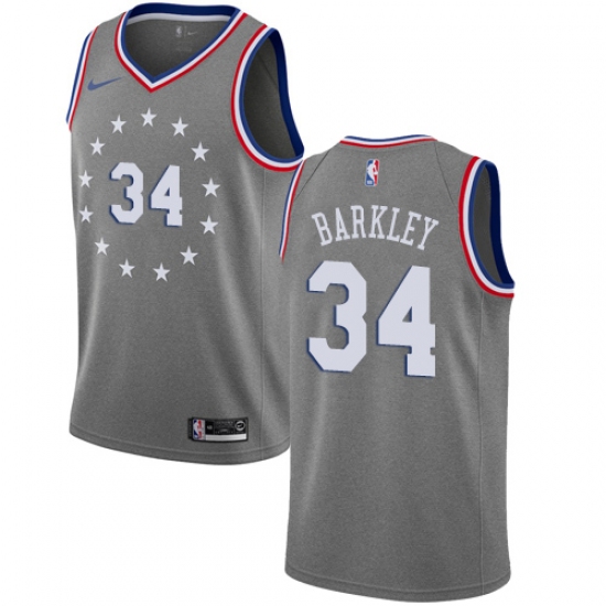 Men's Nike Philadelphia 76ers #34 Charles Barkley Swingman Gray NBA Jersey - City Edition