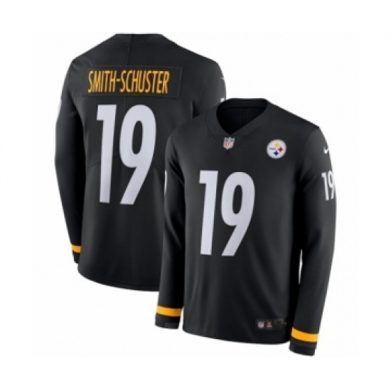 >Men's Nike Pittsburgh Steelers #19 JuJu Smith-Schuster Limited Black Therma Long Sleeve NFL Jersey