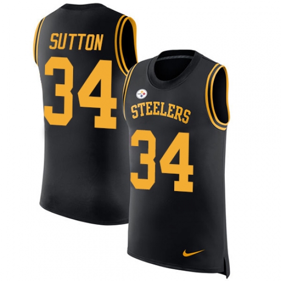 Men's Nike Pittsburgh Steelers #34 Cameron Sutton Black Rush Player Name & Number Tank Top NFL Jersey