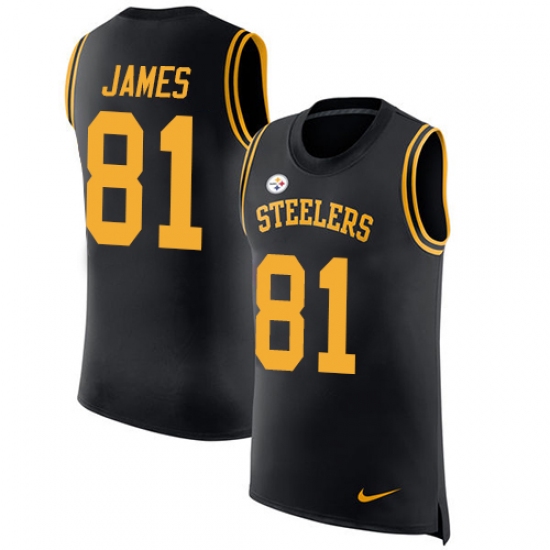 Men's Nike Pittsburgh Steelers #81 Jesse James Limited Black Rush Player Name & Number Tank Top NFL Jersey