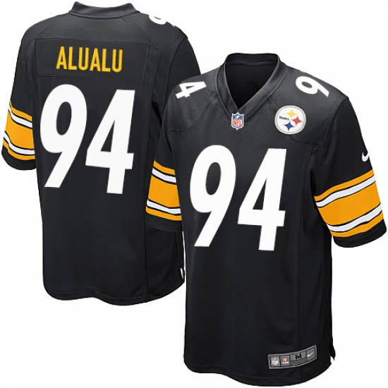 Home>NFL>Pittsburgh Steelers>Tyson Alualu>Men's Nike Pittsburgh Steelers #94 Tyson Alualu Game Black Team Color NFL Jersey