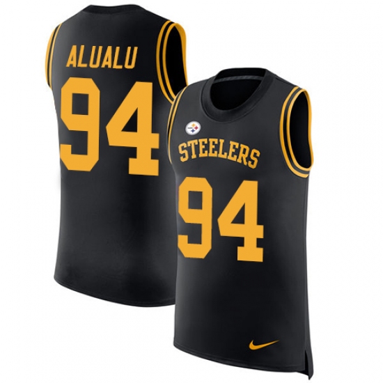 Men's Nike Pittsburgh Steelers #94 Tyson Alualu Limited Black Rush Player Name & Number Tank Top NFL Jersey