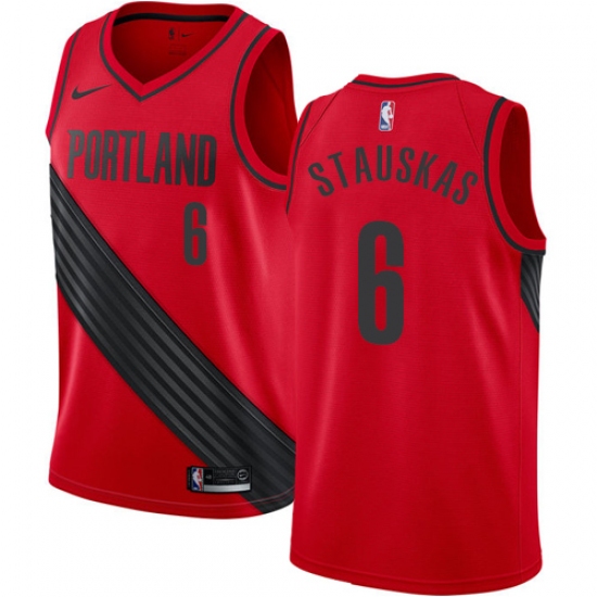 Men's Nike Portland Trail Blazers #6 Nik Stauskas Swingman Red NBA Jersey Statement Edition