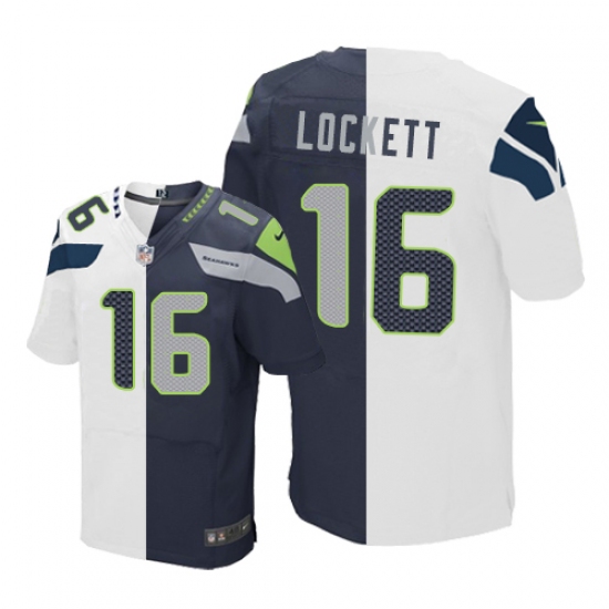 Home>NFL>Seattle Seahawks>Tyler Lockett>Men's Nike Seattle Seahawks #16 Tyler Lockett Elite Navy/White Split Fashion NFL Jersey