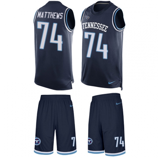 Men's Nike Tennessee Titans #74 Bruce Matthews Limited Navy Blue Tank Top Suit NFL Jersey