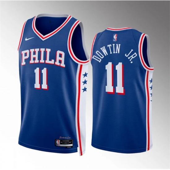 >Men's Philadelphia 76ers #11 Jeff Dowtin Jr Royal Icon Edition Stitched Jersey