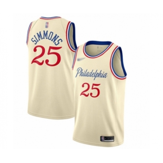 Men's Philadelphia 76ers #25 Ben Simmons Swingman Cream Basketball Jersey - 2019 20 City Edition