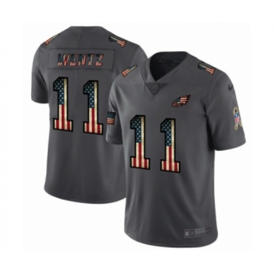 Men's Philadelphia Eagles #11 Carson Wentz Limited Black USA Flag 2019 Salute To Service Football Jersey