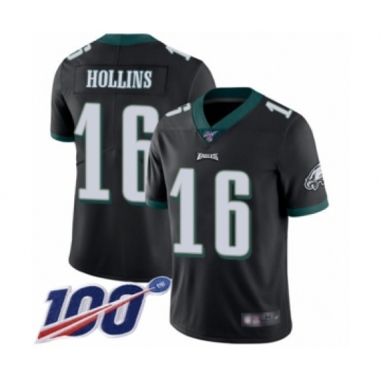 Men's Philadelphia Eagles #16 Mack Hollins Black Alternate Vapor Untouchable Limited Player 100th Season Football Jersey