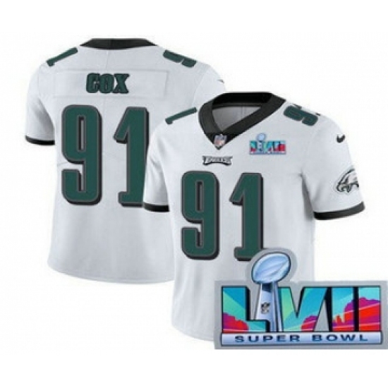>Men's Philadelphia Eagles #91 Fletcher Cox Limited White Super Bowl LVII Vapor Jersey
