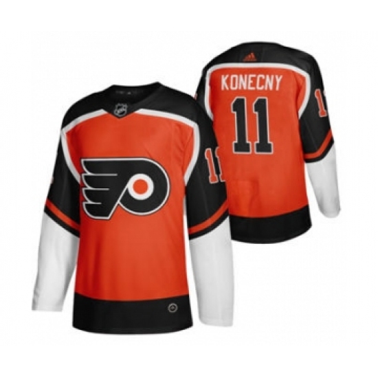 >Men's Philadelphia Flyers #11 Travis Konecny Orange 2020-21 Reverse Retro Alternate Hockey Jersey
