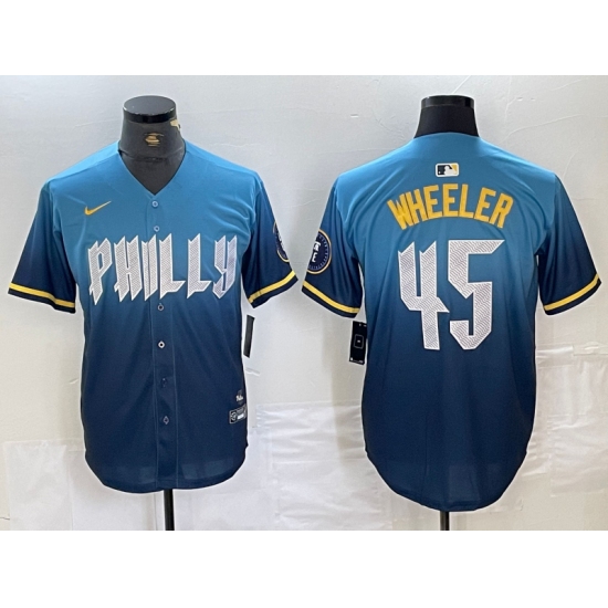 Men's Philadelphia Phillies #45 Zack Wheeler Blue 2024 City Cool Base Stitched Jersey
