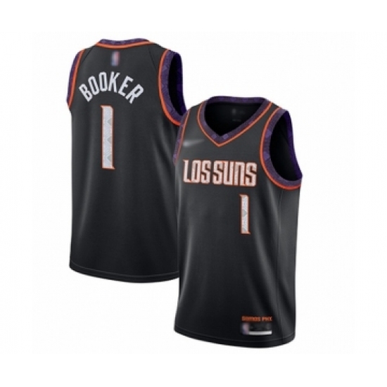 >Men's Phoenix Suns #1 Devin Booker Swingman Black Basketball Jersey - 2019 20 City Edition
