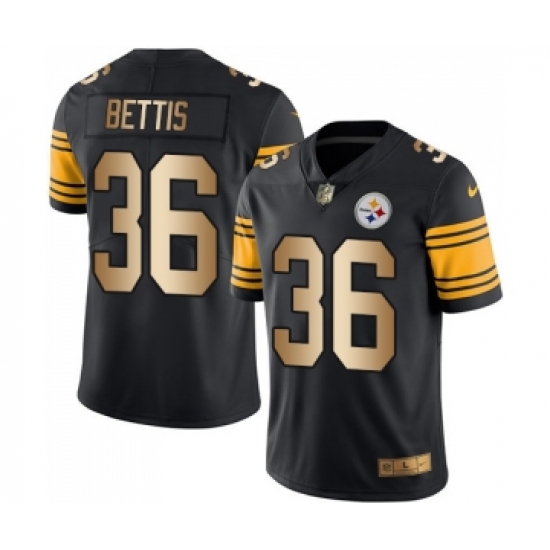 >Men's Pittsburgh Steelers #36 Jerome Bettis Limited Black Gold Rush Vapor Untouchable Football Jersey