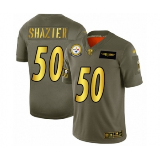 >Men's Pittsburgh Steelers #50 Ryan Shazier Olive Gold 2019 Salute to Service Limited Player Football Jersey