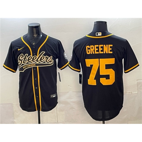 >Men's Pittsburgh Steelers #75 Joe Greene Black With Cool Base Stitched Baseball Jersey