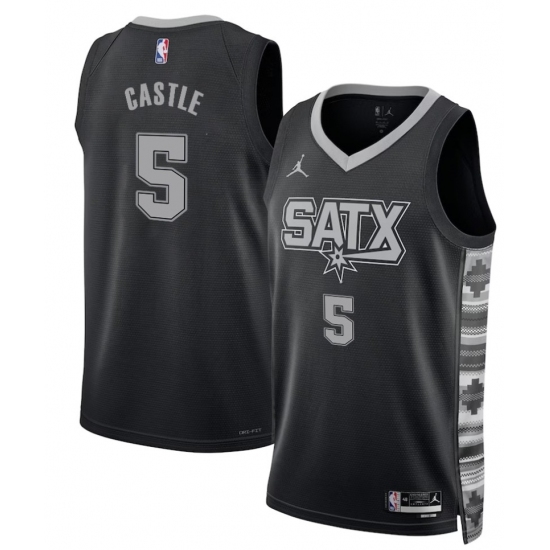 Men's San Antonio Spurs #5 Stephon Castle Black 2025 Statement Edition Stitched Jersey