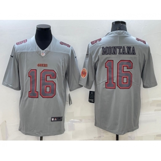 >Men's San Francisco 49ers #16 Joe Montana LOGO Grey Atmosphere Fashion 2022 Vapor Untouchable Stitched Limited Jersey