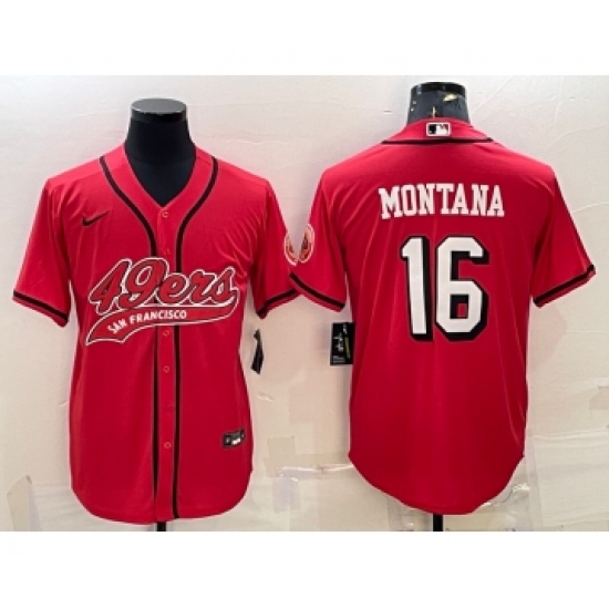 Men's San Francisco 49ers #16 Joe Montana Red Color Rush With Patch Cool Base Stitched Baseball Jersey