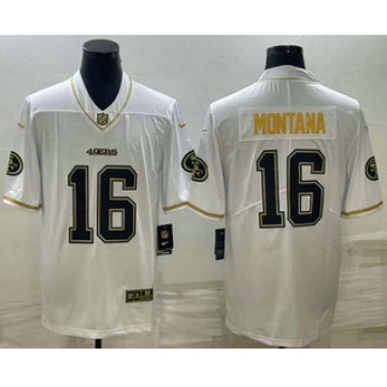 Men's San Francisco 49ers #16 Joe Montana White Gold Stitched Jersey